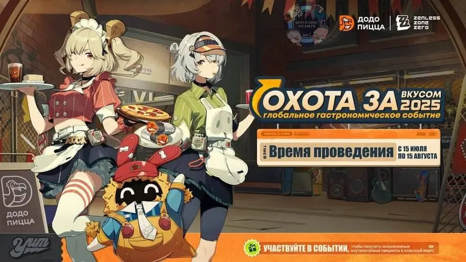 Недавно анонсировали коллаб Zenless Zone Zero с разнообразными ресторанами и закусочными по всему миру. В России и Беларуси это будет коллаб с ДоДо Пицца.