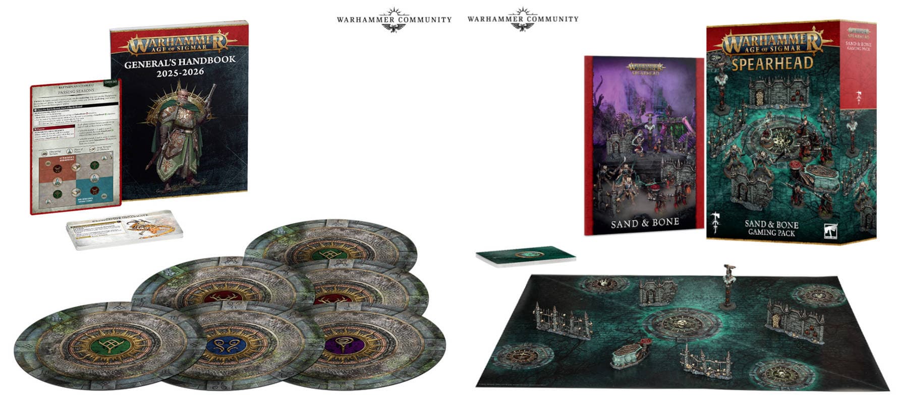 Фанаты Age of Sigmar смогут приобрести коробку с руководством генералов 2025-2026, состоящим из 72 страниц, набором из шести двусторонних карточек Battle Tactics, карточкой правил, 13 двусторонними карточками Universal Manifestations и набором из шести маркеров целей для нового сезона – два Oakenbrow, два Gnarlroot, один Winterleaf и один Heartwood (каждый с нескользящей подложкой).