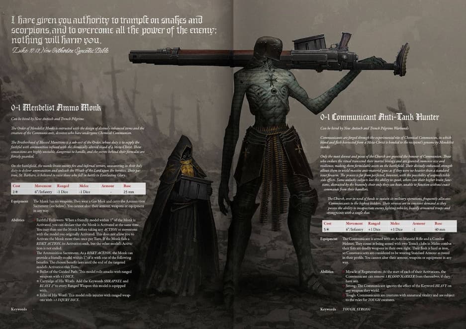Благодаря союзу между такими геймдизайнерами, как Туомас Пиринен, Джервис Джонсон и Энди Чамберс (все они в свое время успели поработать с Games Workshop и вселенными Warhammer), правила Trench Crusade обзавелись всевозможными правками и корректировками.