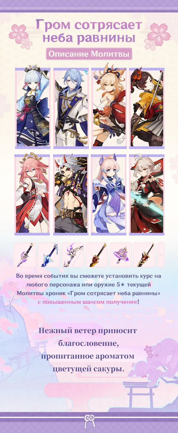 Разработчики Genshin Impact представили специальный баннер «Молитва Хроник: "Гром сотрясает неба равнины"». На этот раз miHoYo (HoYoverse) вспомнила про некоторых персонажей Инадзумы.