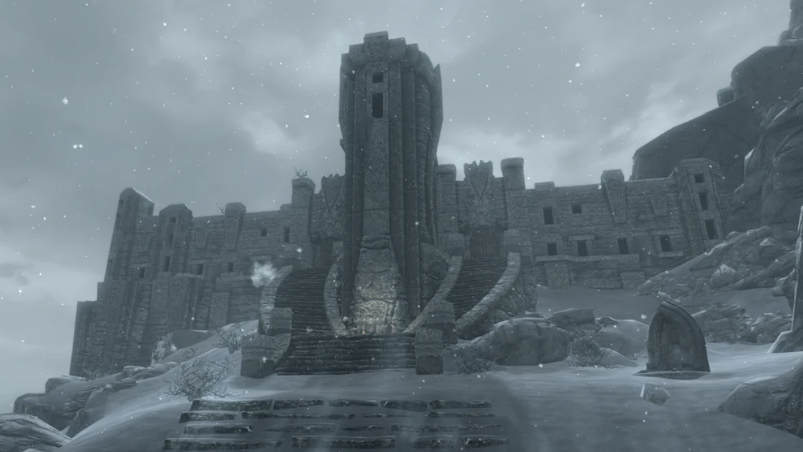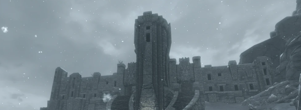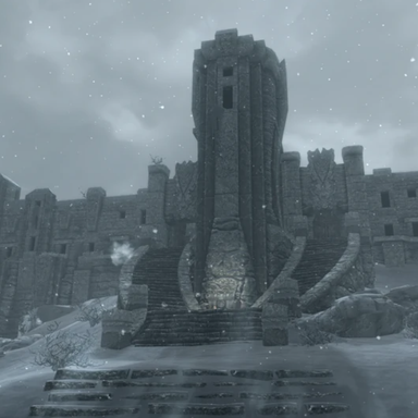Локация описывается как «Высокий Хротгар — уединённый монастырь, находящийся на высоте семи тысяч ступеней на склоне высочайшего пика Скайрима и всего Тамриэля — Глотки Мира», но реальный дизайн отличается.