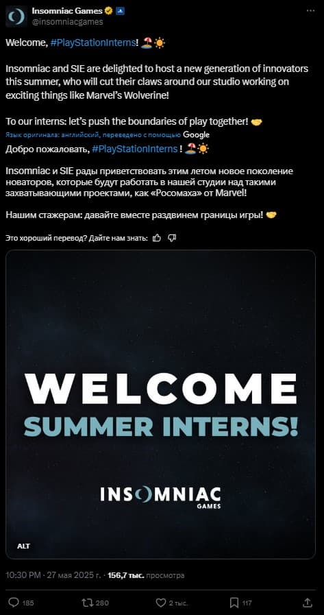 Студия подтвердила, что проект Marvel’s Wolverine жив и активно развивается. 27 мая в официальном аккаунте в сети X появилось сообщение о приёме новых сотрудников.