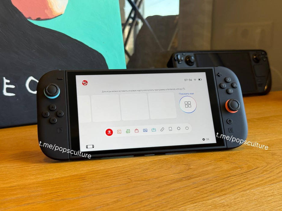 Некоторые уже смогли изучить устройство, например в канале «popsculture» опубликовали подборку фото Switch 2 и русскоязычного интерфейса, а также поделились впечатлениями: