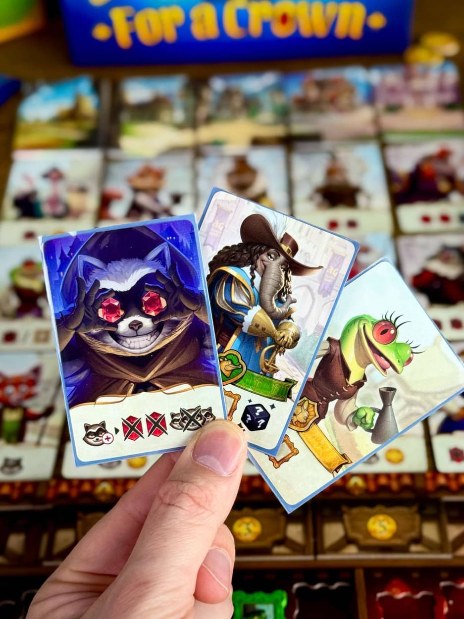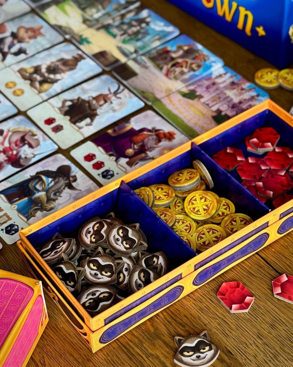 В этой эмоциональной настолке, где партия занимает 30-45 минут, вместе с представителями знатных семей, например, графиней Крольчихой, графом Фламинго и маркизом Крокодилом, людям предстоит сражаться за королевский трон.