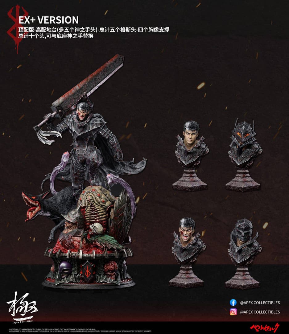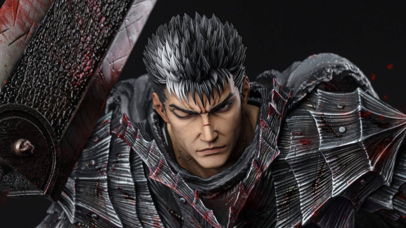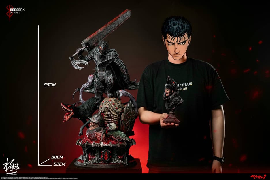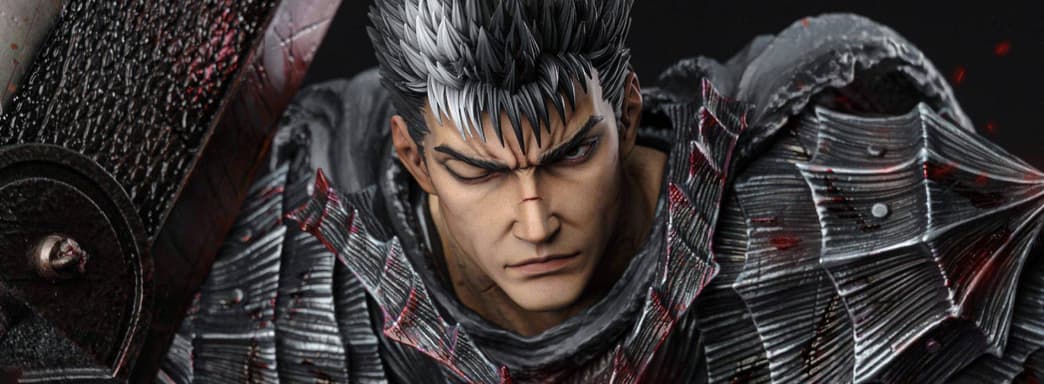 Яростный мечник Гатс из аниме-манги «Берсерк», потерявший во время своих безумных приключений левую руку до локтя и правый глаз, в 2025 году должен получить от компаний Dream Boat Studio и Apex Studio новую статую, высота которой равна 95 см.