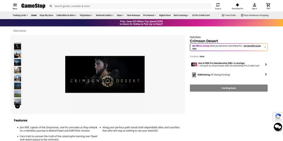 Ранее было известно, что Crimson Desert стартует на ПК, PS4, PS5, Xbox One и Series X|S. Теперь появилась информация о возможном релизе и на Switch 2. Поводом стала страница немецкого магазина сети GameStop, где игра размещена в разделе новинок для новой консоли Nintendo.