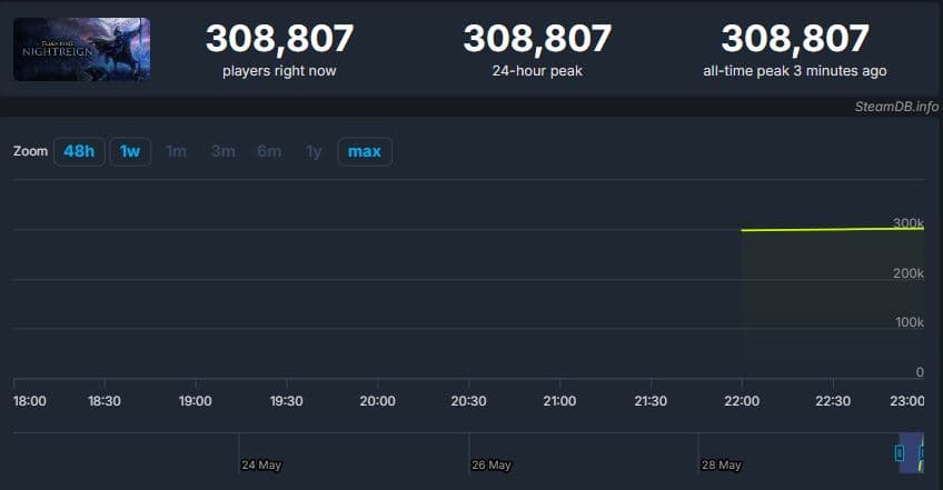30 мая в 1:00 по московскому времени состоялся релиз кооперативного ролевого экшена Elden Ring Nightreign. Спустя час пиковый онлайн игры в Steam перешагнул отметку в 300 тысяч душ (308,807 на момент написания этих строчек).