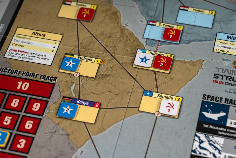 В ближайшем будущем русскоязычные геймеры смогут перенестись в 1974 год и понаблюдать за конфликтом между США и СССР на Аравийском полуострове, так как открылся предзаказ на настольную игру «Сумеречная Борьба: Красное Море».