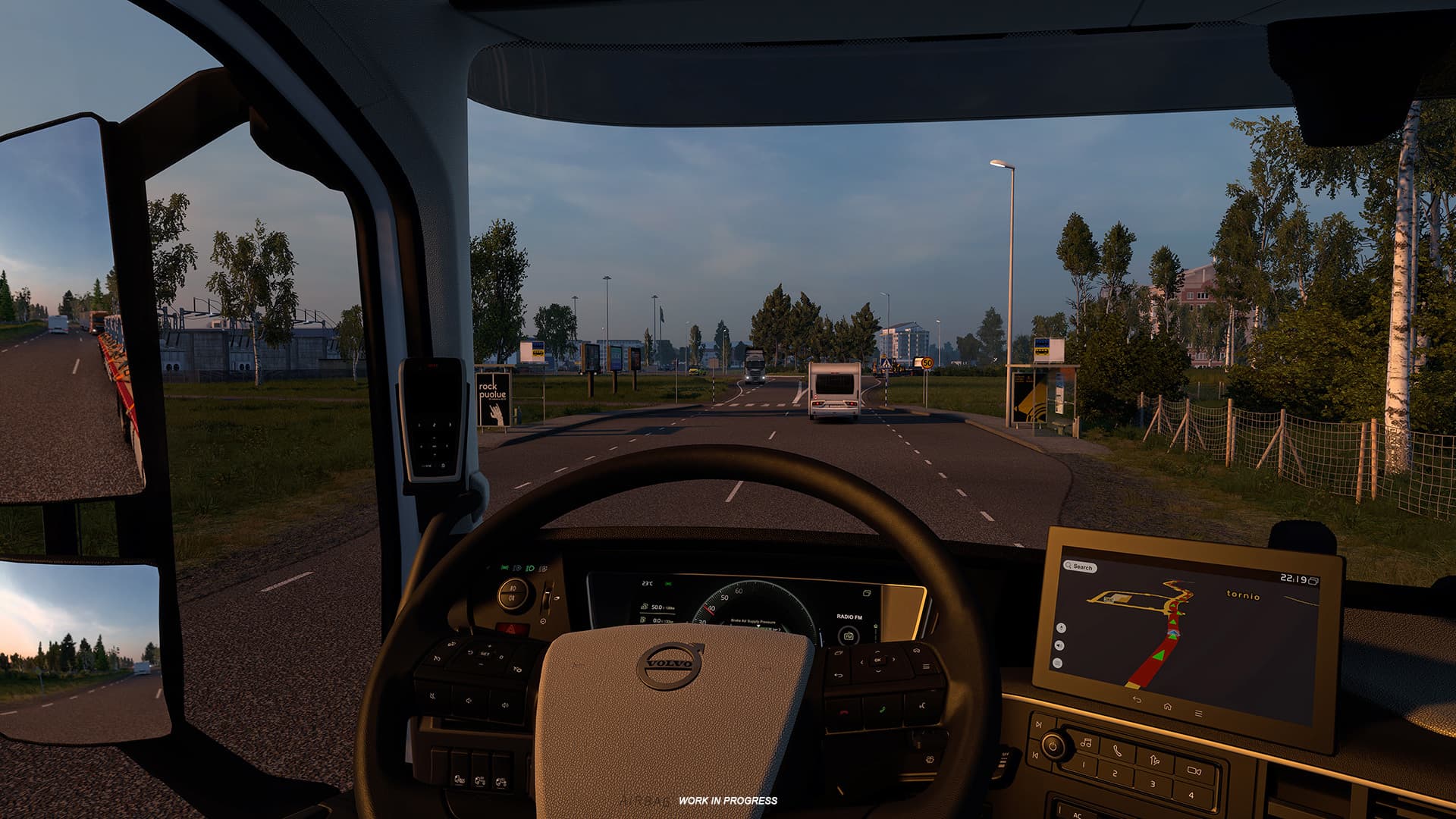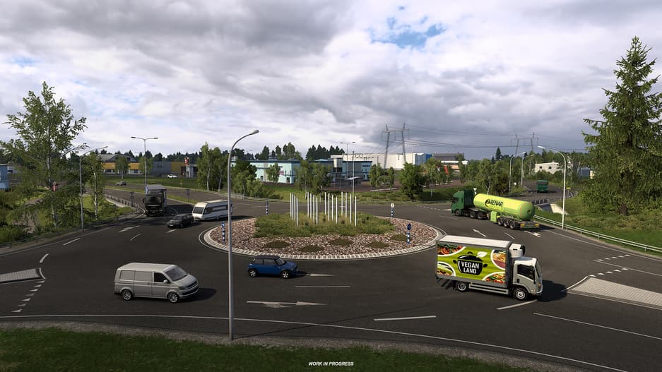 «Хотя в реальном мире это два отдельных муниципалитета, в ETS2 они будут появляться вместе под одним игровым названием "Торнио" из-за ограничений масштаба. Однако игроки могут увидеть определяющие элементы с обеих сторон этого общего региона».