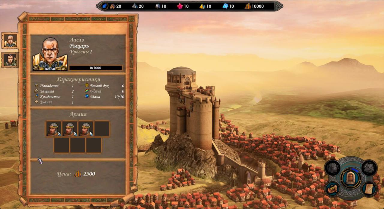8) Виджет миникарты со всеми его составляющими: динамическая текстура с типами ландшафта на карте, иконки городов, героев и объектов, отображение тумана войны