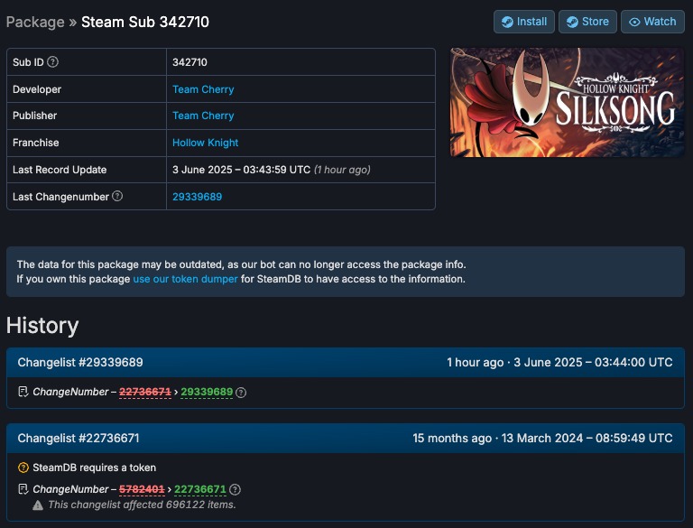 На фоне подготовки к Summer Game Fest и Xbox Games Showcase 2025 фанаты вновь оживились: на странице Hollow Knight: Silksong в Steam начали появляться обновления. Похоже, Team Cherry всё-таки что-то готовит.