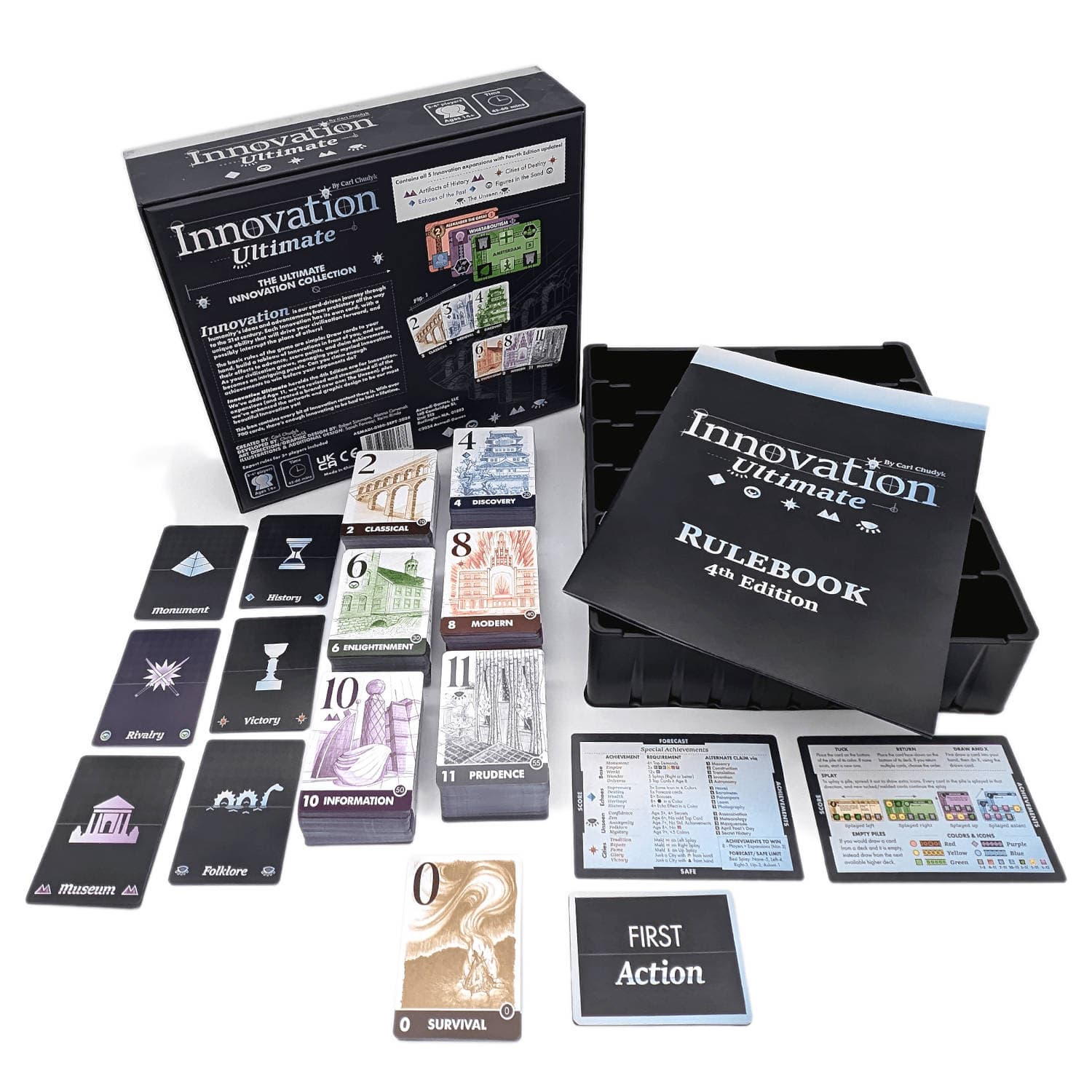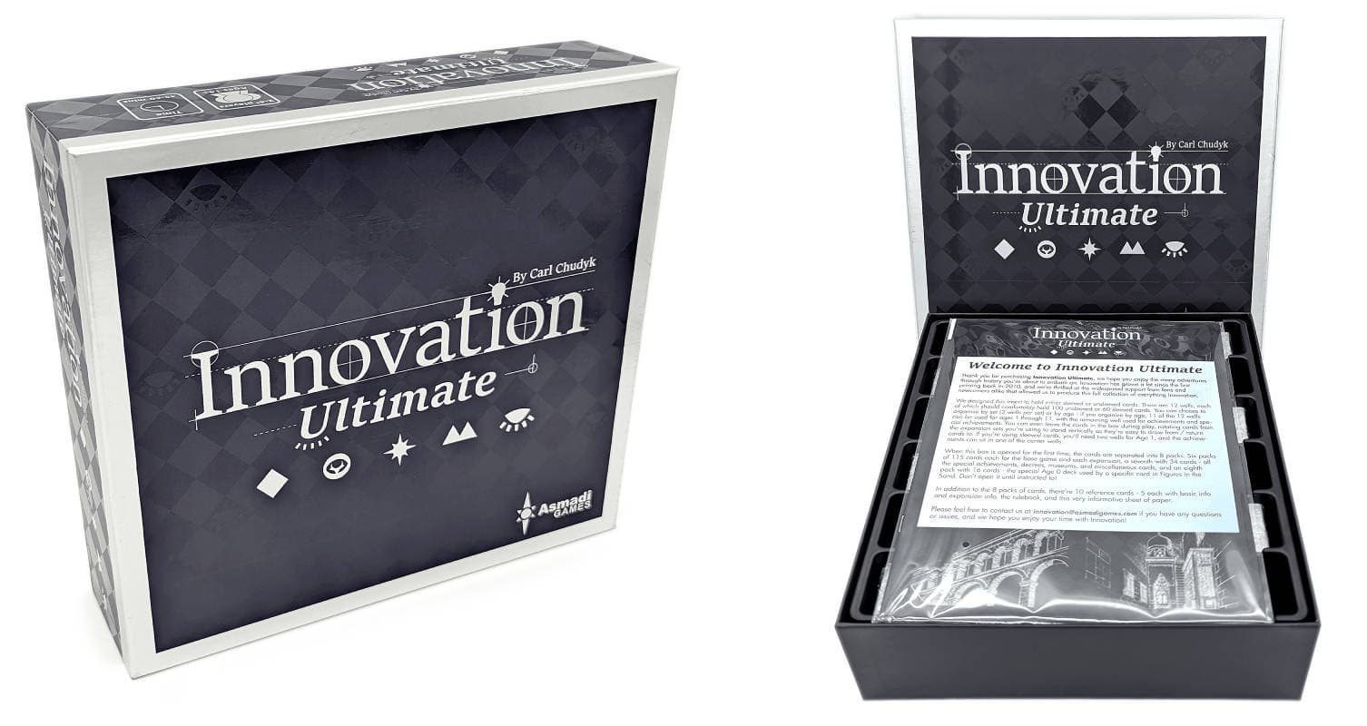 Уже в начале июля издательство 4Games (4ies) собирается открыть предзаказ на коробку Innovation: Ultimate, содержащую карточную игру «Инновация» в четвёртой редакции и пять дополнений – Echoes of the Past, Figures in the Sand, Cities of Destiny, Artifacts of History и The Unseen.