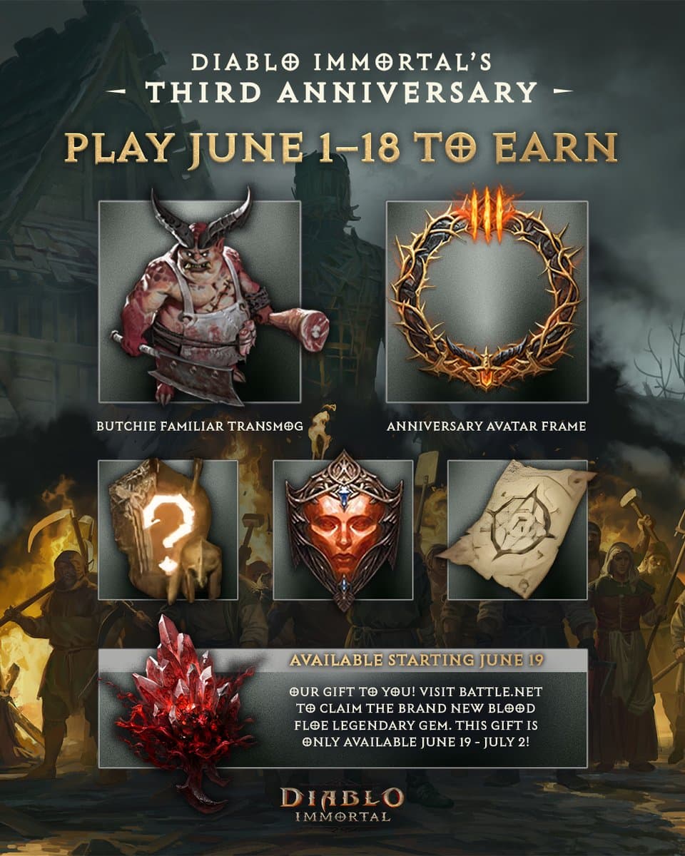Diablo Immortal отмечает третью годовщину, и студия Blizzard подготовила серию тематических событий. Центральное из них — Trial of True Evils, в рамках которого игрокам предстоит сразиться сразу с четырьмя знаковыми боссами: Скарном, Мясником, Баалом и самим Диабло. Победа над всеми противниками позволит получить пятизвёздочный самоцвет и другие награды. Ивент продлится до 19 июня.