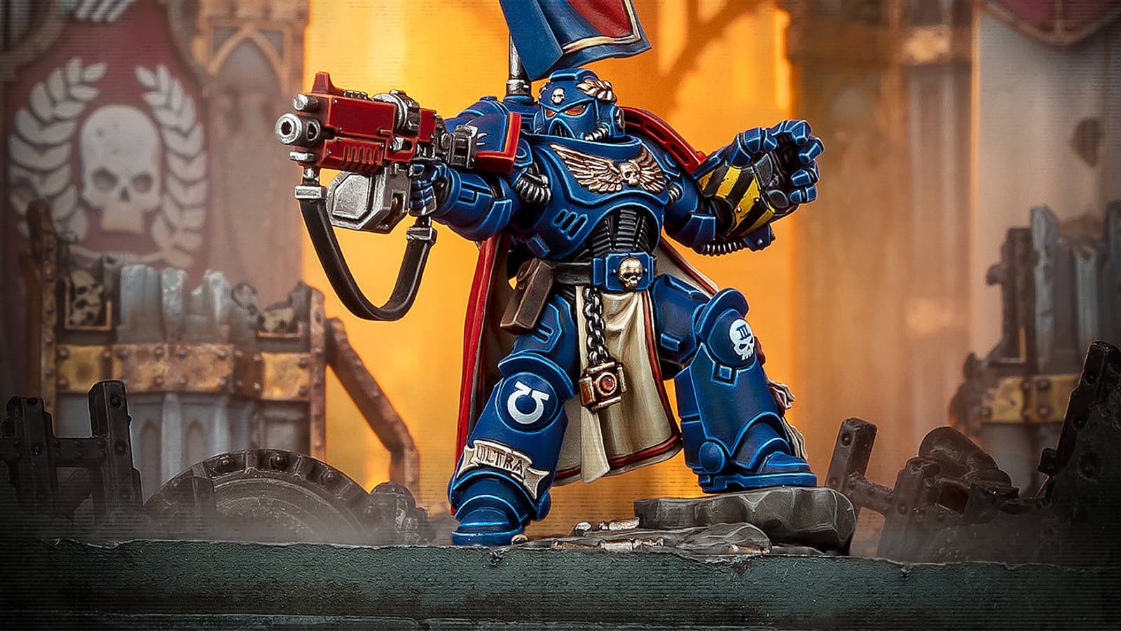 В ближайшем будущем поклонники настольной игры Warhammer 40,000 смогут купить в специализированных магазинах новую версию лимитированной миниатюры Центоса – капитана Ультрамаринов.