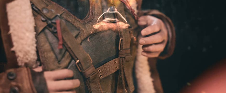 Судя по видео, подобный коллекционный предмет обзаведется курткой (или пальто), сделанной из плотного материала, маской, закрывающей нижнюю часть лица, тактическим бронежилетом и ремнями с пряжками, а также, возможно, внешностью актера Тома Харди.
