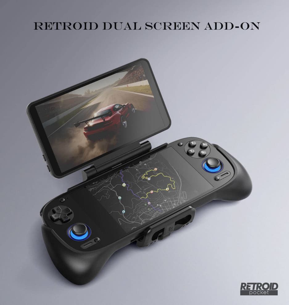 Но вот сегодня сотрудники Retroid все-таки сделали официальный анонс. Они представили опциональный аддон для своих устройств. Если быть точнее, то речь идет о дополнительном OLED-экране с креплением на консоли Retroid Pocket 5, Pocket Mini и Pocket 4 Pro.