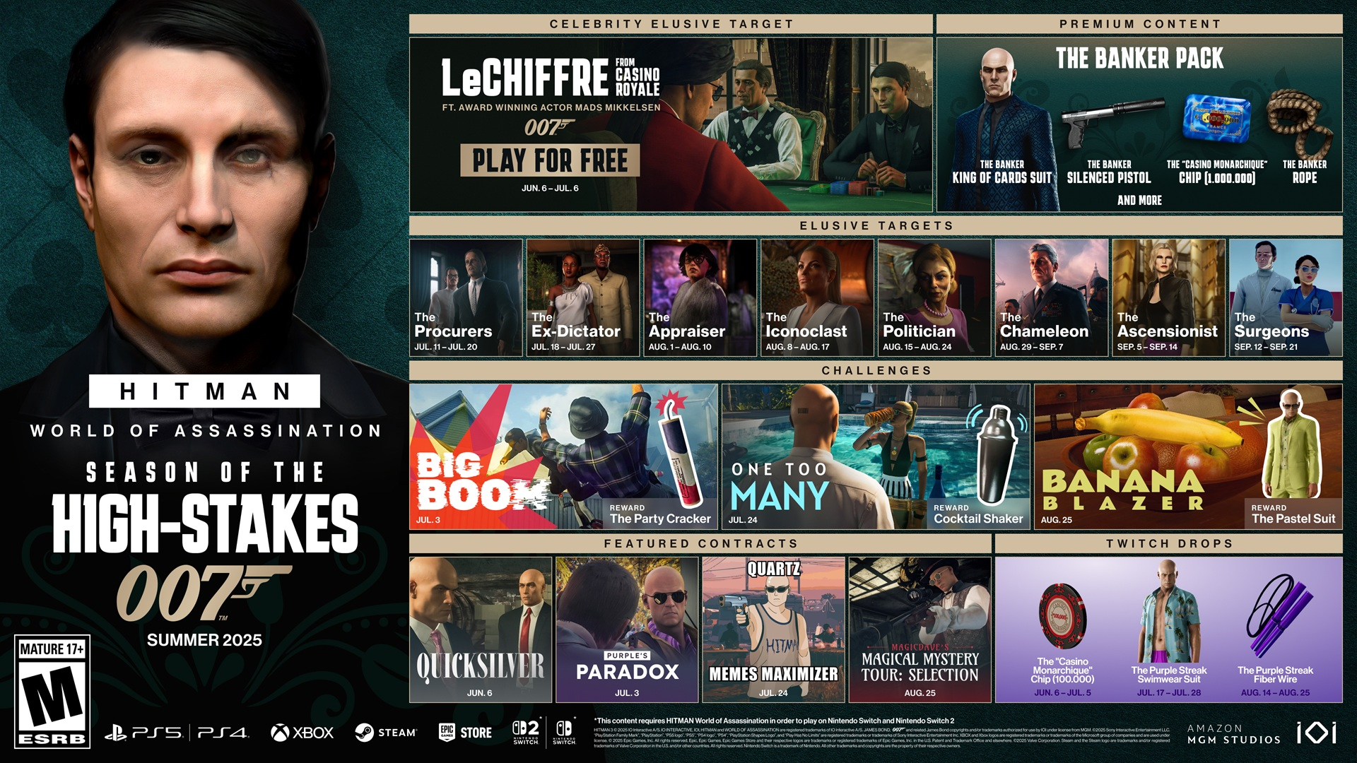 В Hitman World of Assassination можно будет выполнить серию контрактов; разблокировать костюм; а за просмотр трансляций за Twitch открыть косметические предметы.