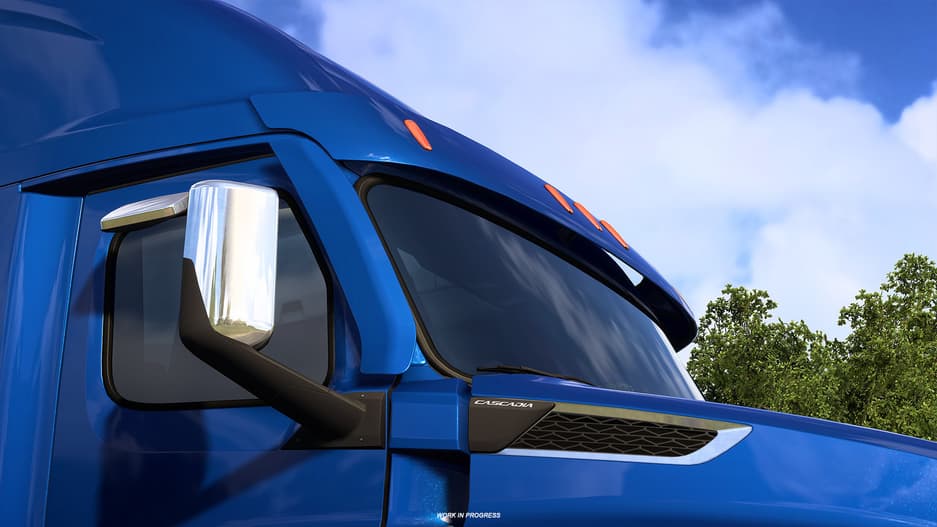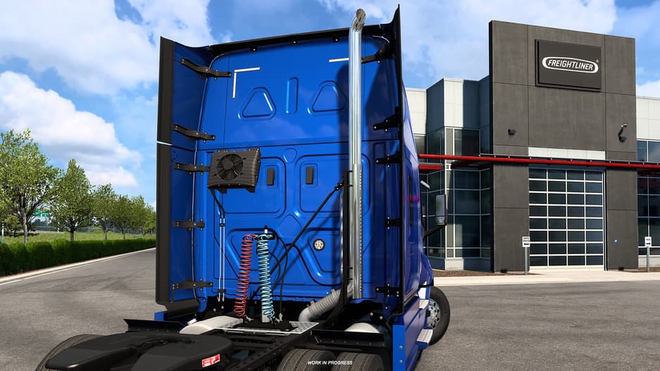 SCS Software намерена вернуться к грузовику в American Truck Simulator 1.55 — совместно с партнёрами из Freightliner подготовили некоторые новые элементы тюнинга для интерьера, вроде нового чёрного варианта оформления, и экстерьера, например хромированные боковые зеркала.