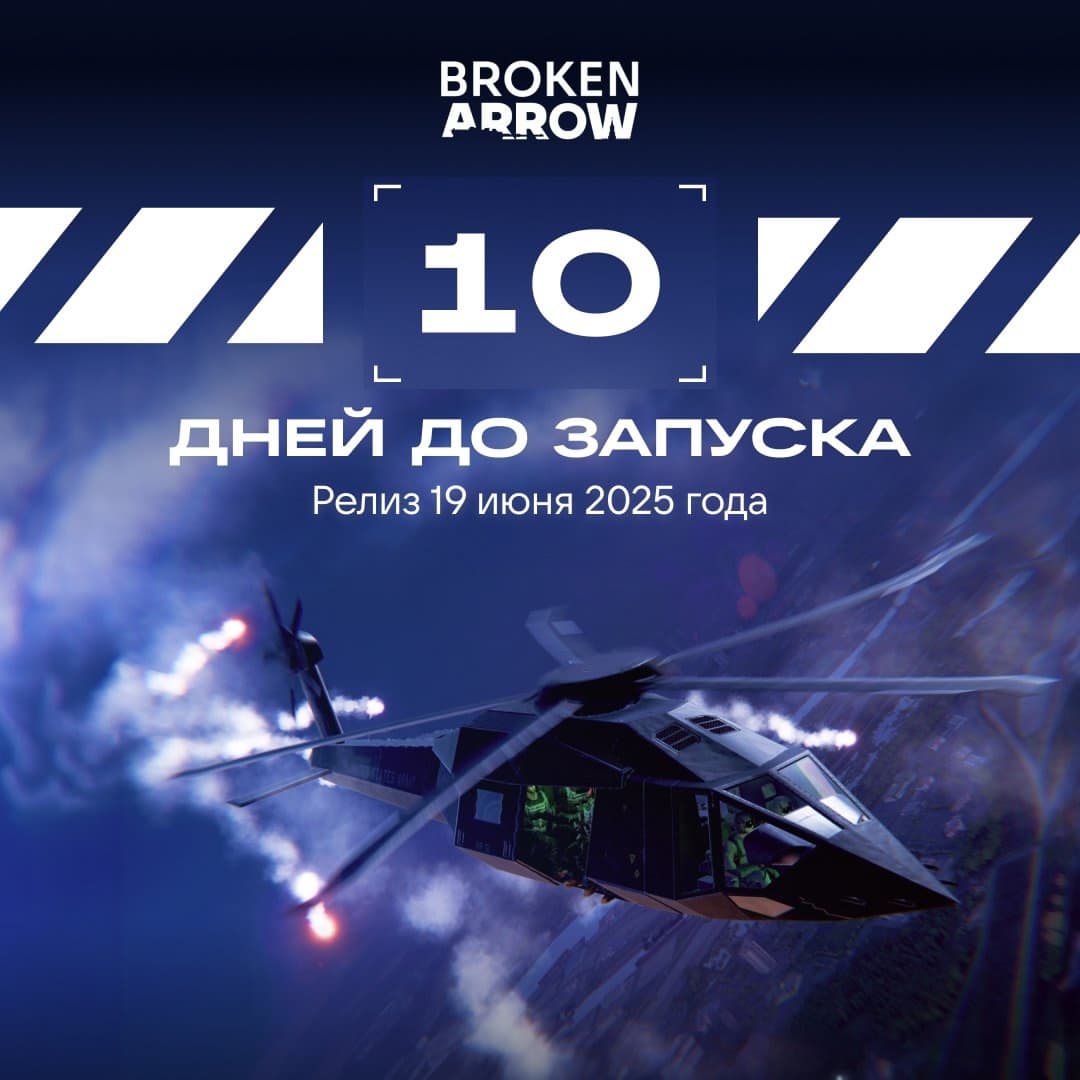 «До запуска Broken Arrow осталось 10 дней! Совсем скоро вы получите доступ к современной военной стратегии: управляемая техника, продуманная кастомизация и реалистичное поле боя. Это финишная прямая — подготовьтесь к самому главному сражению!