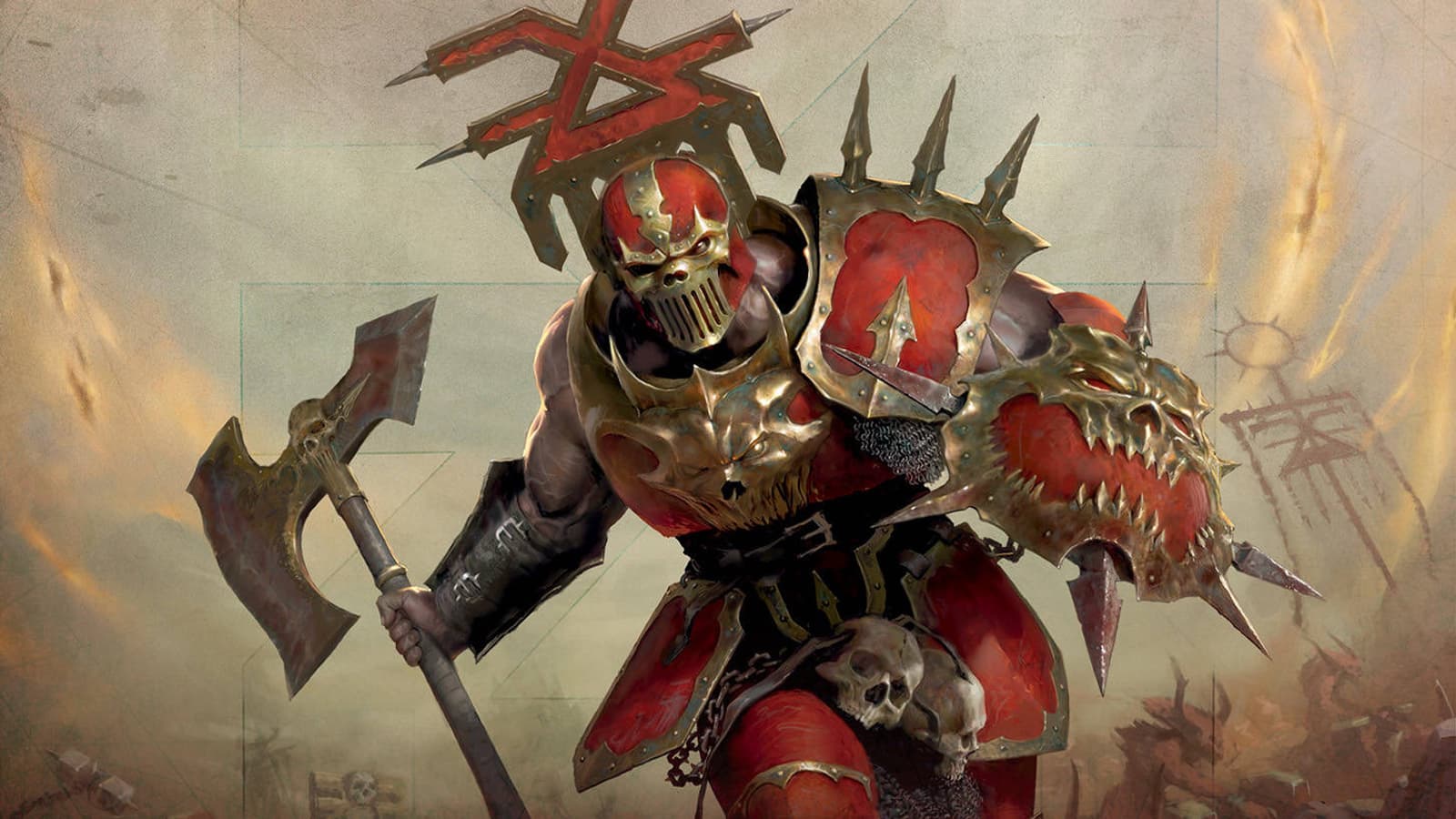 Разработчики настольной игры Warhammer Age of Sigmar представили новинки для почитателей Кхорна, обожающих собирать черепа для трона черепов, проливать кровь врагов и уничтожать все на своем пути.