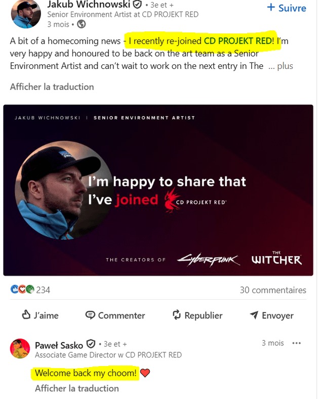 На форуме Reddit (r/witcher) пользователи заметили, что к работе подключились специалисты по сценариям, дизайну окружения, визуалу и игровым механикам. Эти разработчики уже участвовали в создании прежних хитов, и теперь снова в строю.
