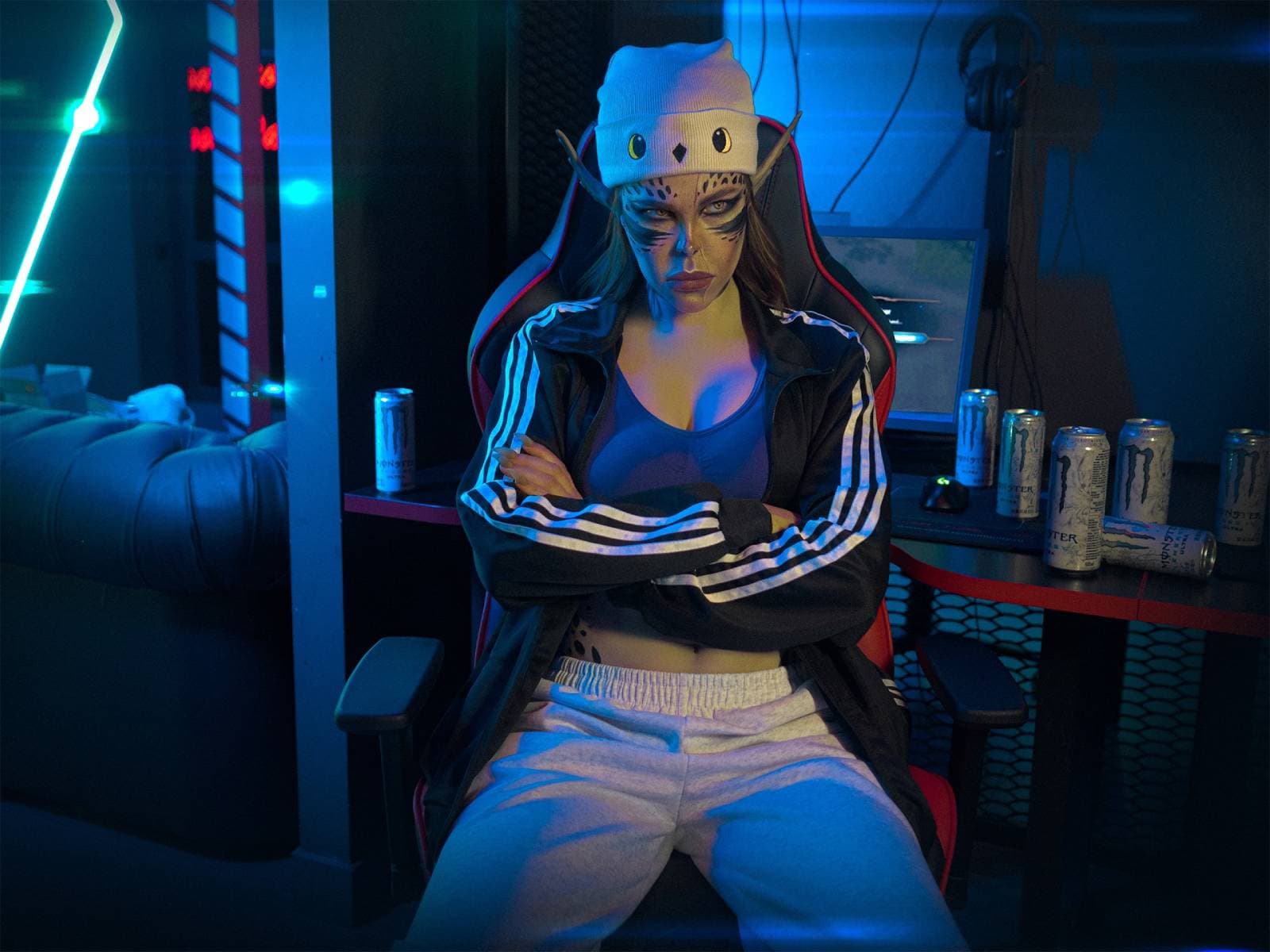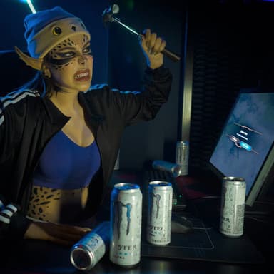 Во время фотосессии, которую провел фотограф Дио, она вновь превратилась в Лаэзель. Но на этот раз свирепая гитьянка предстала в образе геймера, обожающего пить энергетические напитки и ломать мониторы после неудачных забегов в BG3 (либо провальных матчей в Counter-Strike 2, Dota 2 и других проектах).