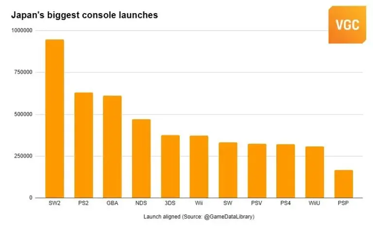 Nintendo Switch 2 официально стала самой успешной консолью в истории Японии по итогам первой недели продаж. Согласно данным Famitsu, за первые четыре дня с момента выхода 5 июня в Японии было продано 947,931 консолей. Эта цифра, вероятно, превышает один миллион, если учесть продажи через официальный магазин My Nintendo Store, которые не включены в статистику Famitsu.