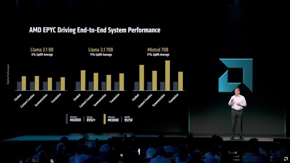 Тесты проводились в связке с ускорителями Instinct MI300X, так что акцент был сделан именно на взаимодействии CPU и GPU.