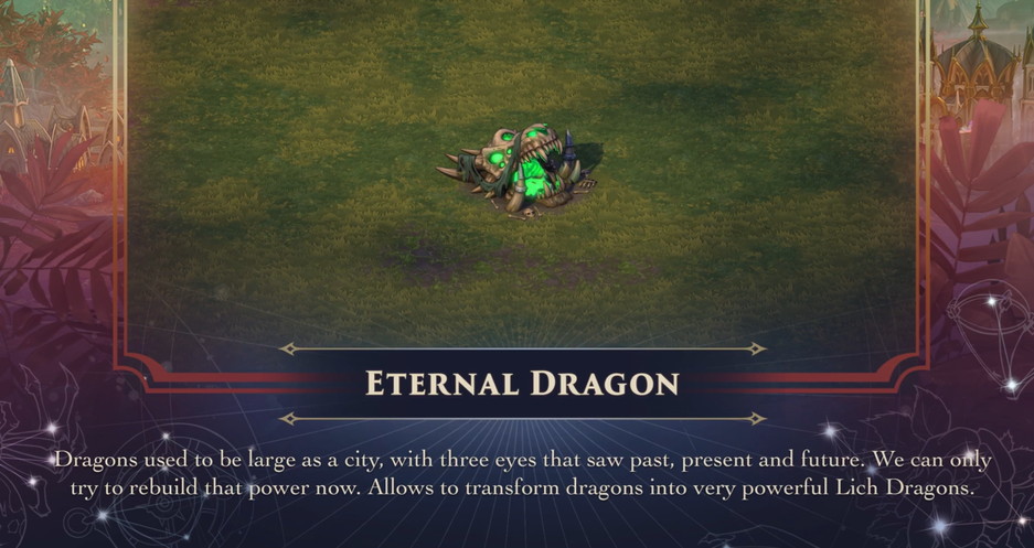 Когда-то драконы были огромными, как город, с тремя глазами, которые видели прошлое, настоящее и будущее. Сейчас мы можем лишь попытаться восстановить эту силу. Позволяет превращать драконов в очень могущественных драконов-личей».