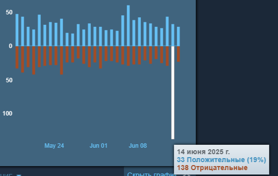 - crybaby (1,1 тыс. часов): «Не играйте ближайшие дни, сервера падают каждые 5 минут с откатом [...] Чините сервера - меняю отзыв»