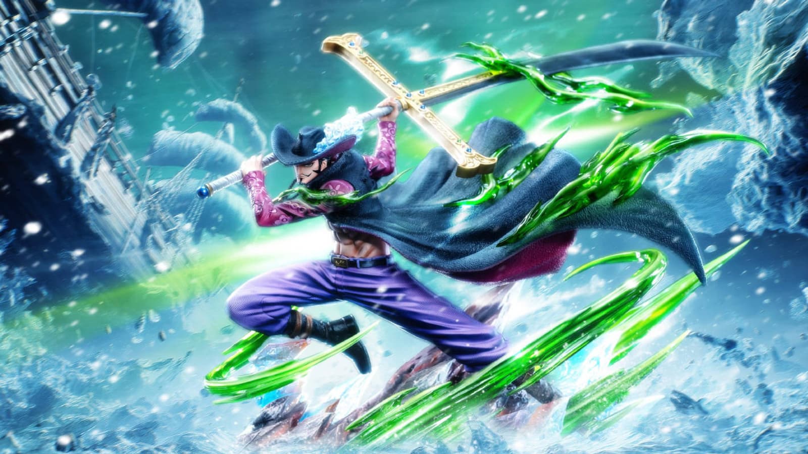 Этот персонаж запросто может разрезать огромный айсберг или линкор с помощью своего оружия – огромного меча под названием Ёру, а также задействовать во время сражений хаки Наблюдения и хаки Вооружения.