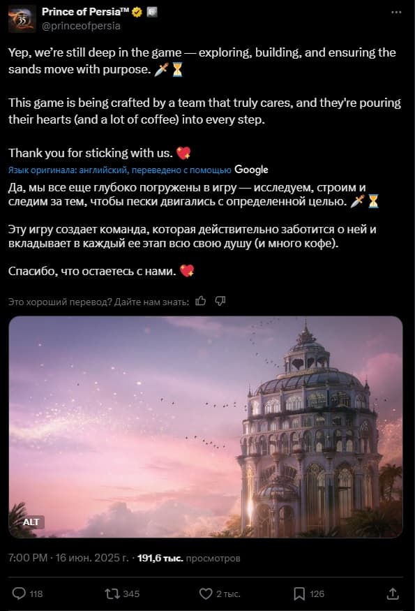 Ubisoft Montreal опубликовала в сети X сообщение: команда «всё ещё глубоко погружена в игру — изучает, создаёт и делают так, чтобы пески двигались с определённой целью».