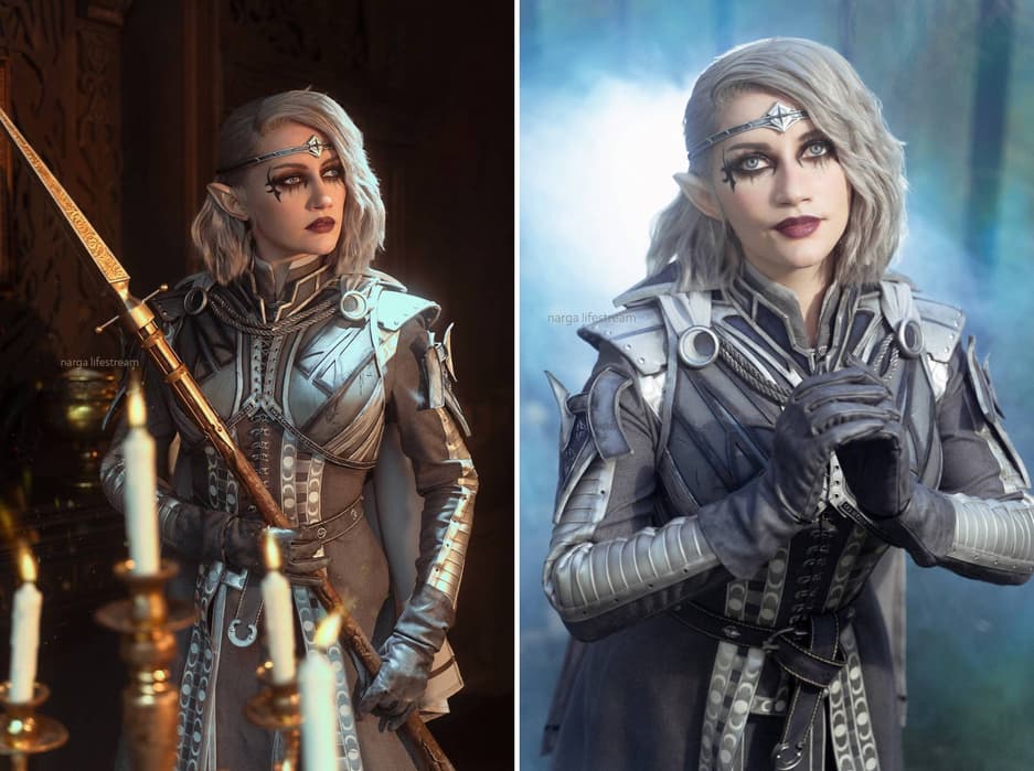 Косплеерша Narga превратилась в Изобель Торм – высшего полуэльфа и жрицу Селунэ из RPG Baldur’s Gate 3, чтобы сразиться с членами культа Абсолют и другими опасными противниками.