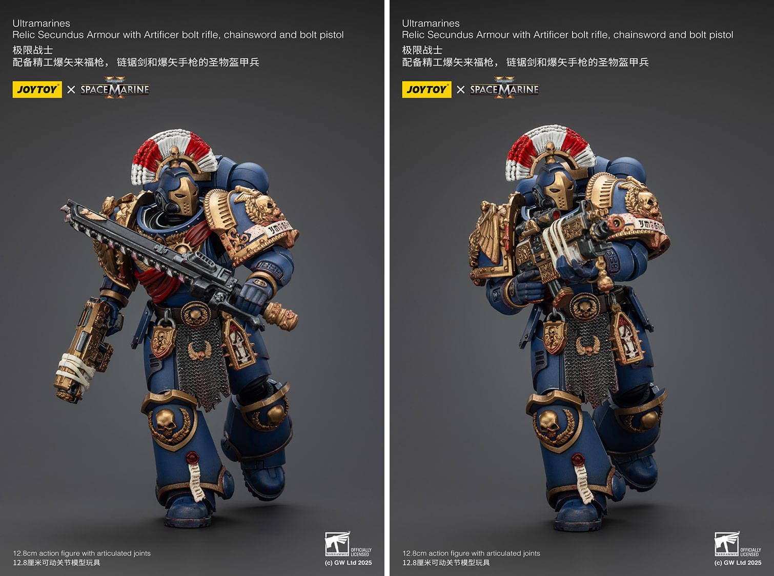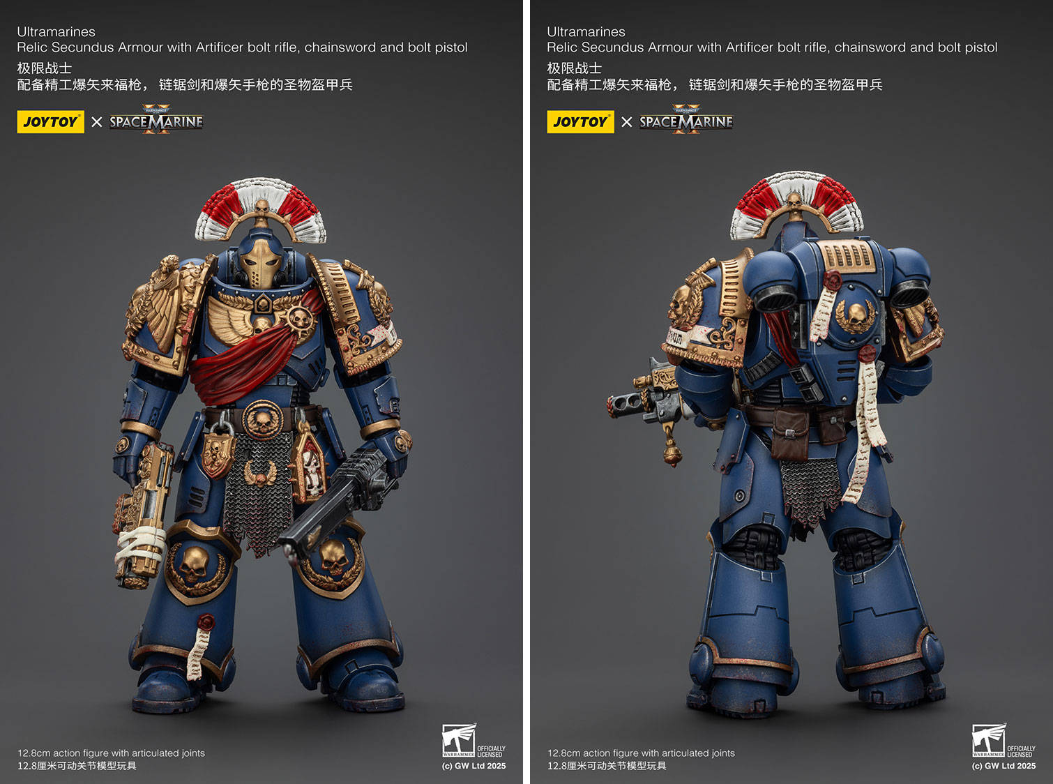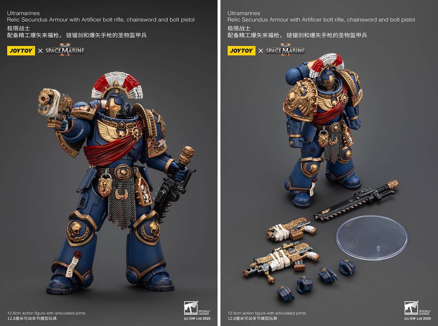 Компания JoyToy представила сегодня не только фигурку имперского рыцаря дома Рейвенов, но и фигурку Ультрамарина в реликтовой броне Secundus из шутера Warhammer 40000: Space Marine 2.