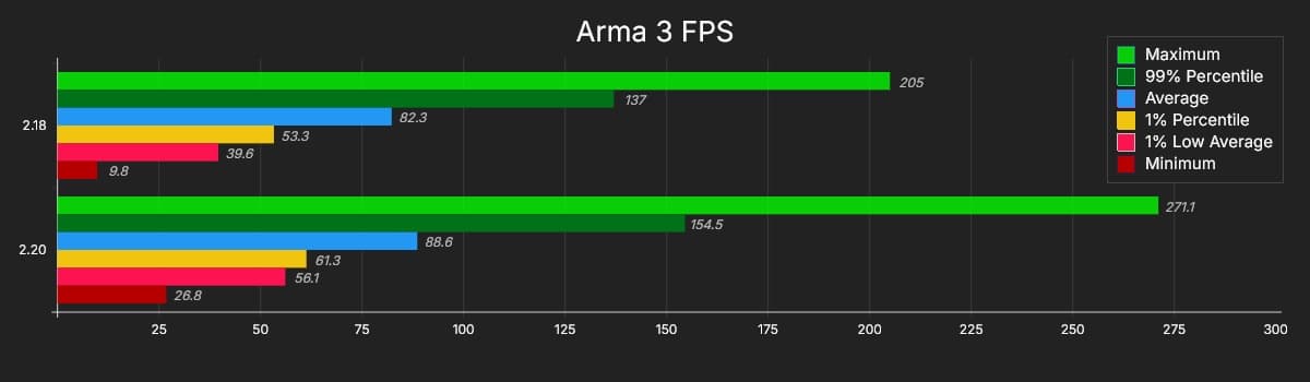 Разработчики Arma 3 разобрались с поддержкой многопоточности CPU. Bohemia Interactive в блоге уточняет: «мы не "добавили многопоточность" в обновлении 2.20 — движок RV имеет многопоточность со времён Arma 2. Однако мы переработали весь наш многопоточный код и внесли некоторые оптимизации».