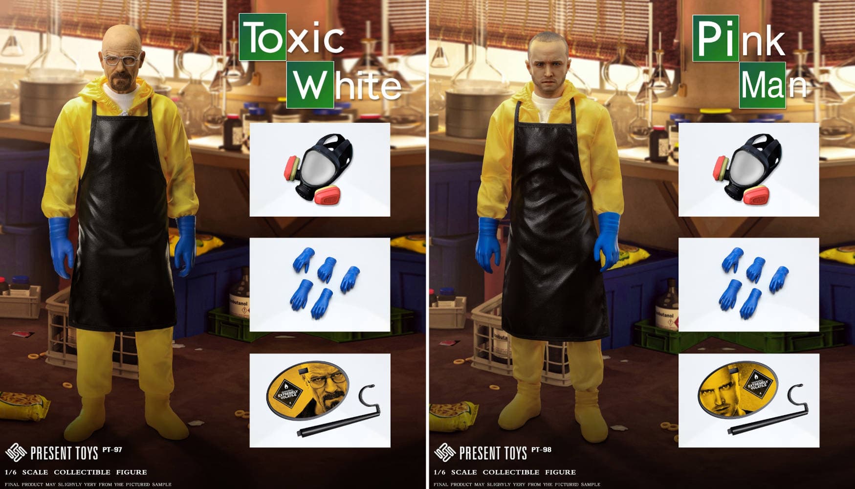 Сериал «Во все тяжкие» завершился еще в 2013 году, но у него до сих пор есть множество фанатов, которые периодически пересматривают его. Сегодня компания Present Toys представила новые фигурки в масштабе 1/6, посвященные Уолтеру Уайту и Джесси Пинкману.