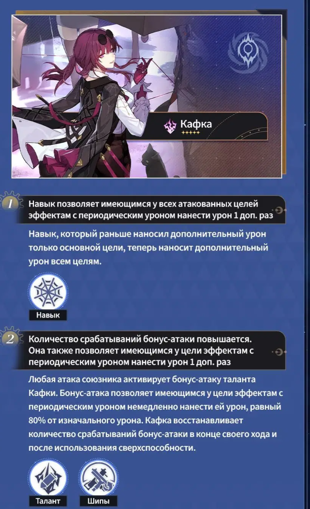 Изменения затрагивают эйдолоны и механику работы умений, например сверхспособность Серебряного Волка будет не одиночной, а групповой атакой, способной снизить защиту всех противников; а навык Кафки, который раньше наносил дополнительный урон только основной цели, а будет — всем целям.