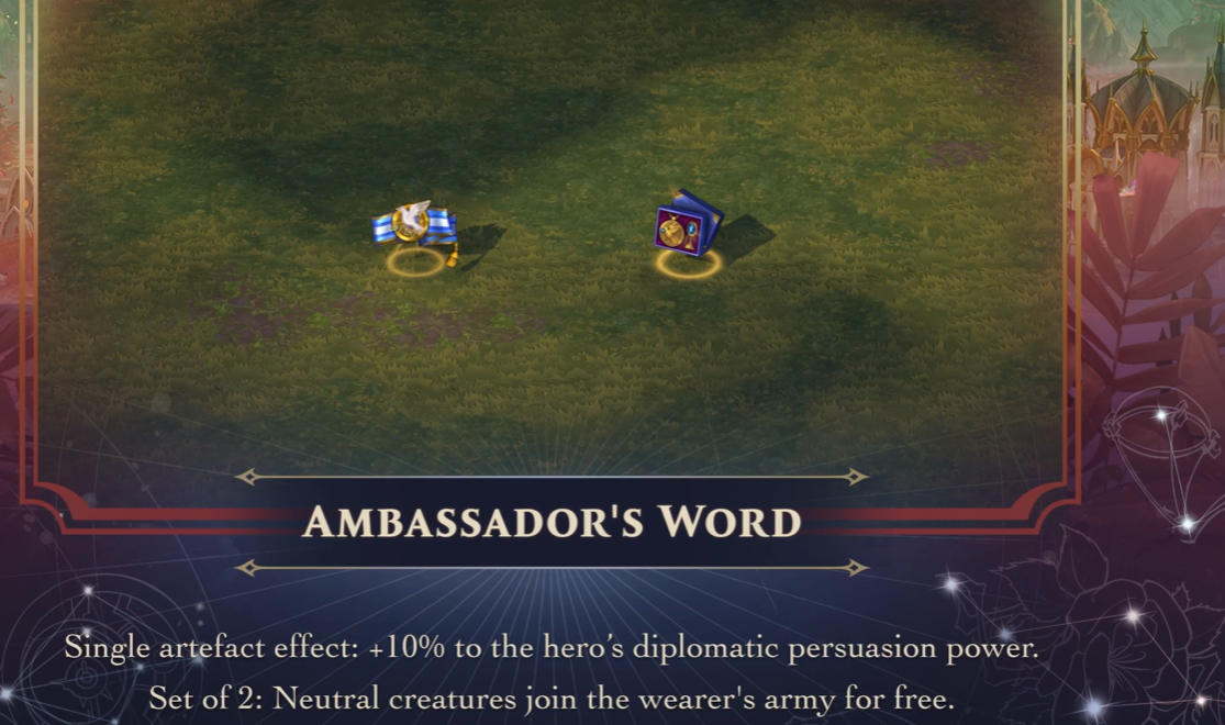 Эффект одного артефакта: +10% к дипломатической силе убеждения героя.