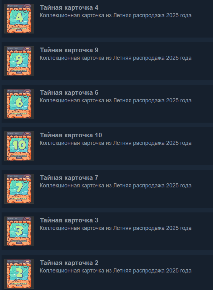 Как обычно, Valve не раскрывает изображения карт до старта события, пока карточки летней распродажи Steam 2025 «тайные».