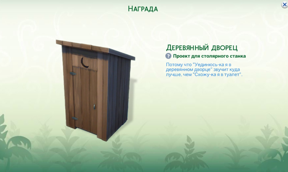 Местный «боевой пропуск» в The Sims 4 получил название «Зов природы». До 5 августа игрокам предлагают выполнить серию заданий и заполучить разнообразные награды: виртуальную валюту, зелье для изменения черт характера, предметы декора, одежду и деревянный туалет, названный «Деревянный дворец».