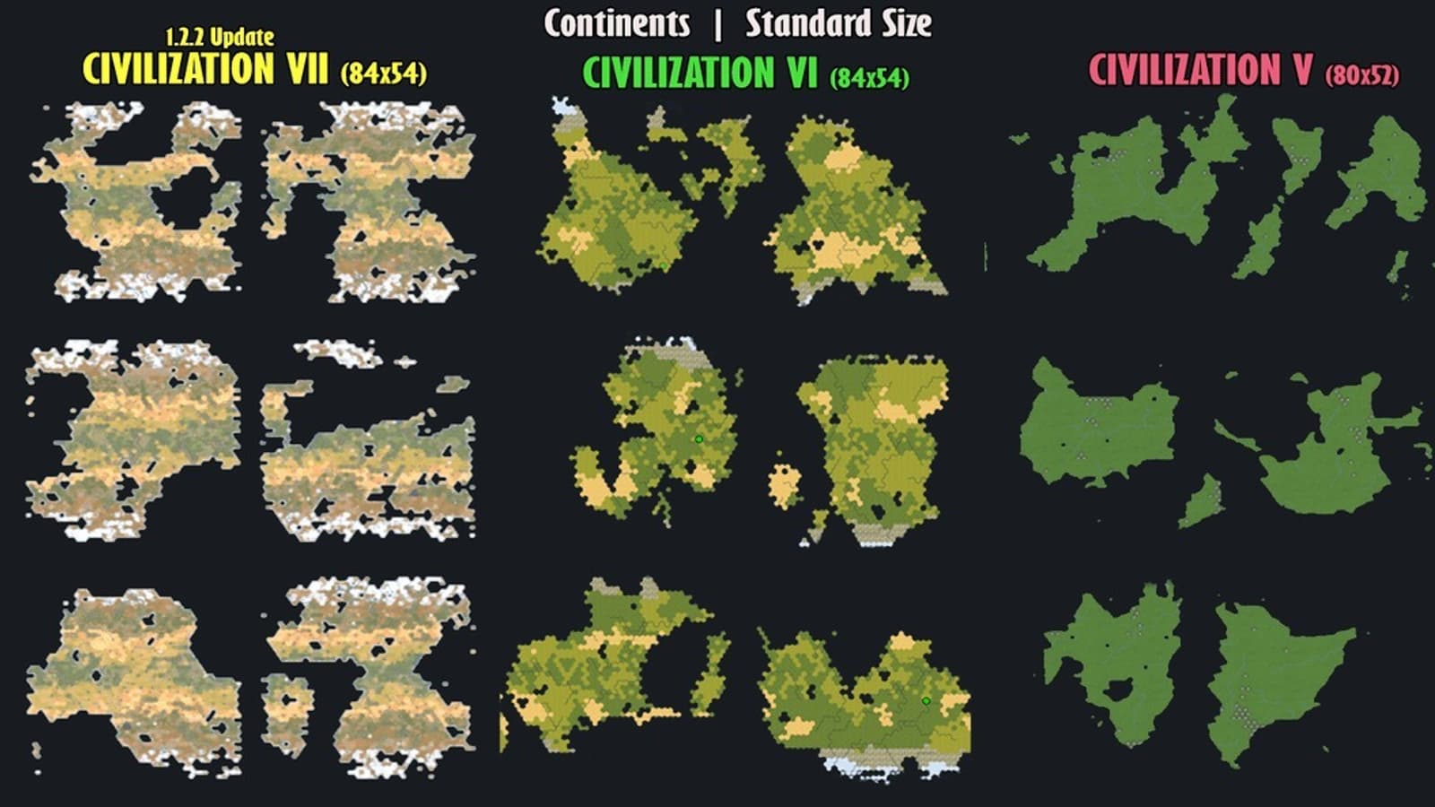 Некоторые системы всё же стали лучше. Например, карты теперь генерируются немного правдоподобнее, но игроки быстро заметили: по сравнению с Civilization V и VI прогресс почти неощутим. На Reddit появилось сравнение карт за 15 лет, где видно, как сильно ухудшилось качество.