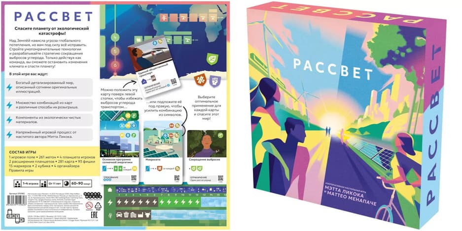 Коробка с игрой содержит игровое поле, 261 жетон, четыре планшета игроков, два расширения планшетов, 281 карту, 93 фишки, 15 маркеров, два кубика, четыре органайзера и правила. До складов «Рассвет» доберется в конце июля 2025 года.
