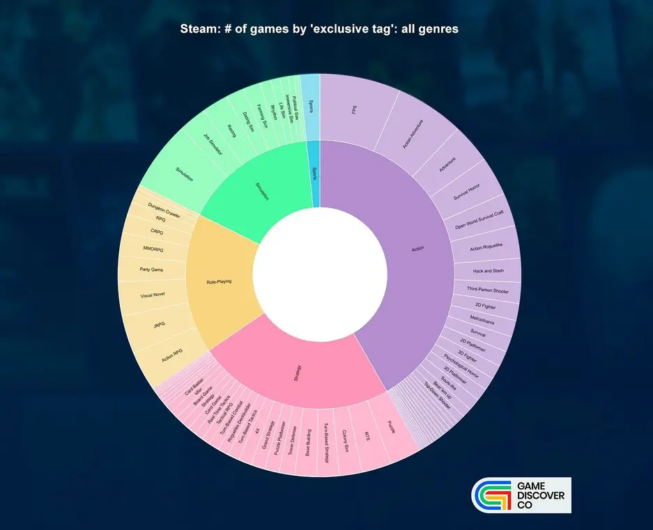 В Steam выпускают игры самых разных жанров, но основную выручку собирают лишь определённые категории.