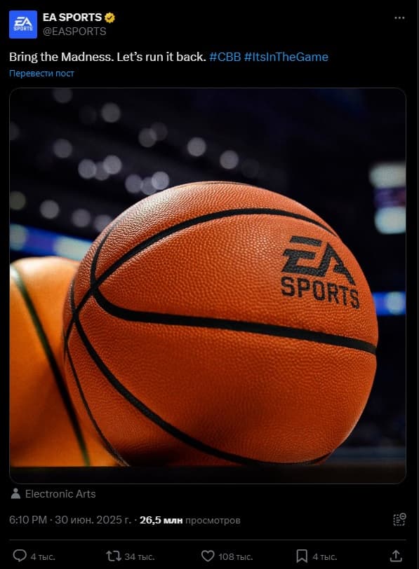 Пока точное название не сообщается, но, похоже, игра получит имя EA Sports College Basketball 26. Это логично, учитывая, что проект станет частью обновлённой линейки спортивных симуляторов EA, куда также входит College Football.