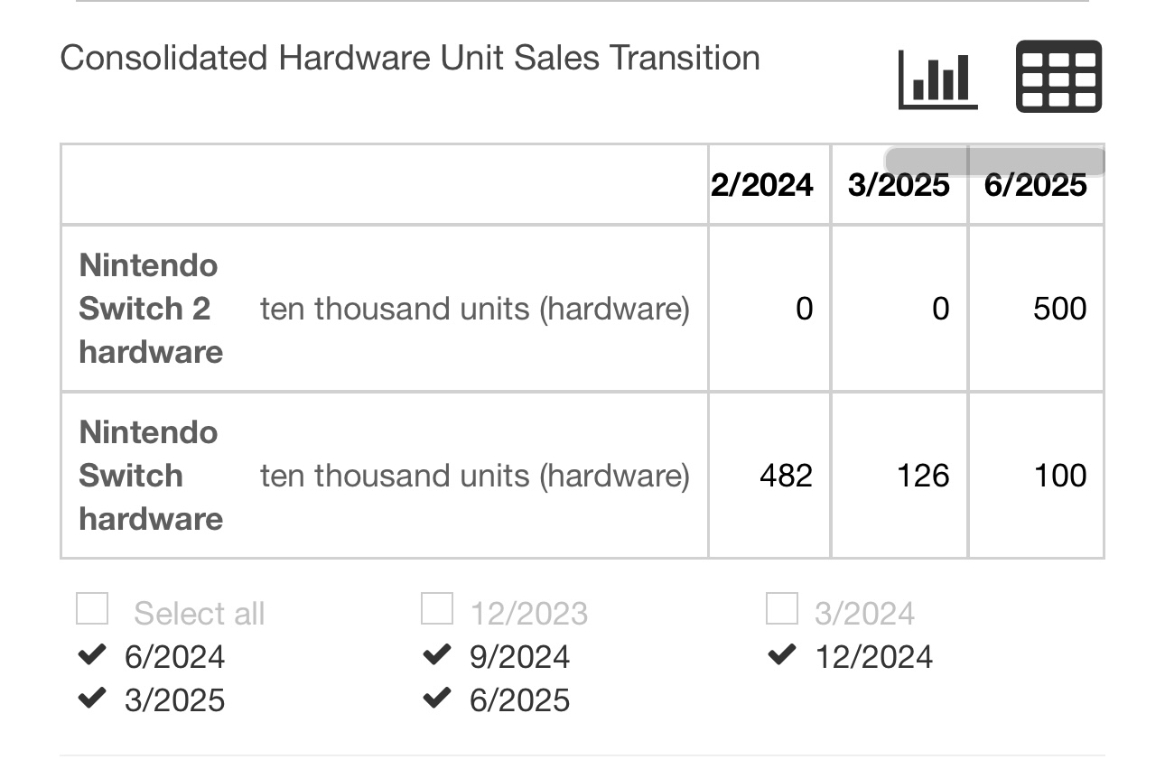 Исходя из опубликованной таблицы, было продано 4,95 млн устройств. Однако, по оценке пользователя Reddit под ником Ok_Albatross_948, проанализировавшего график, реальные продажи могли составить около 5,4 млн — примерно вдвое больше, чем у оригинальной Nintendo Switch за тот же период.