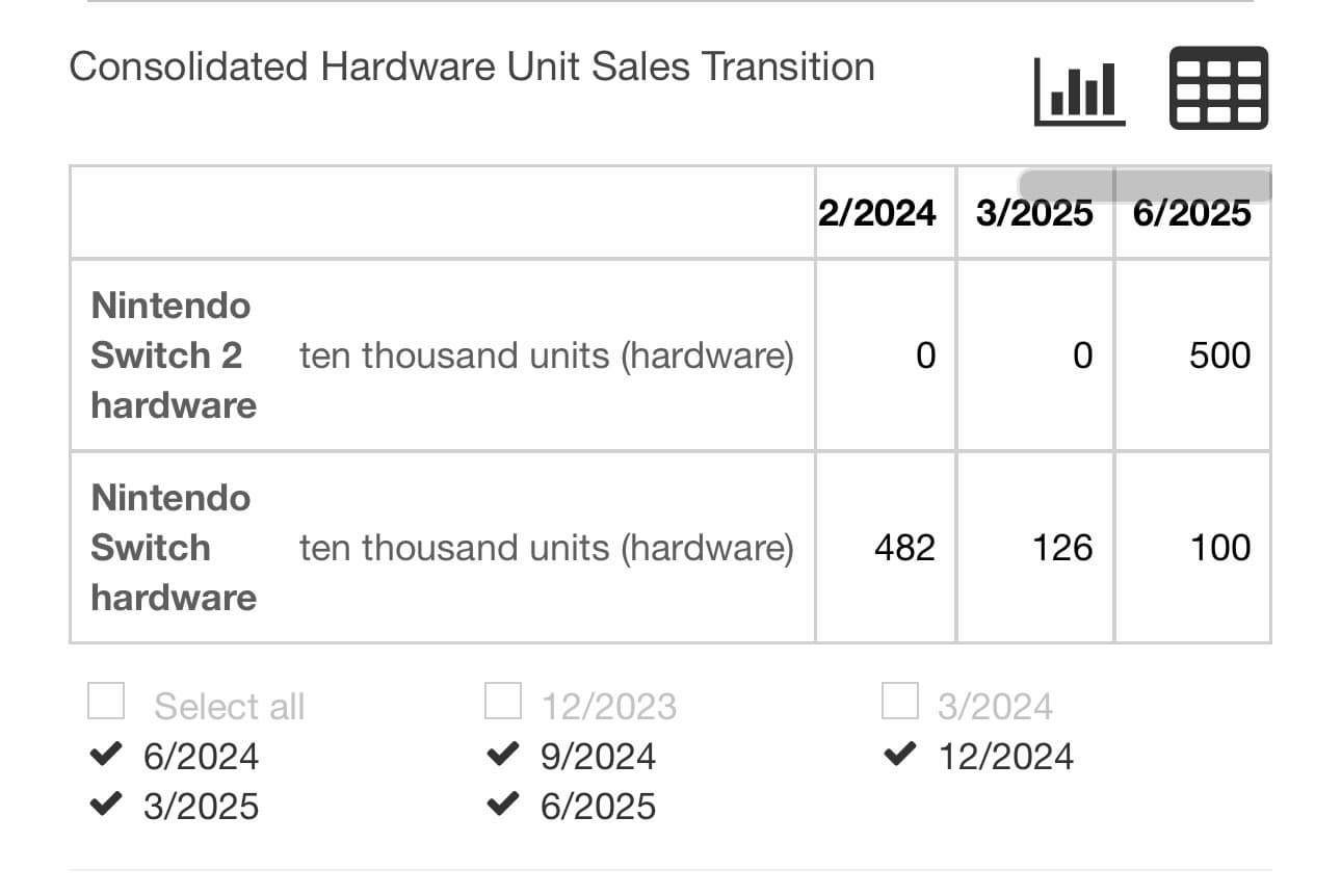 Nintendo пока не публиковала обновлённые данные о продажах Switch 2, однако пользователи заметили на её сайте таблицу с информацией, которая вскоре была удалена.