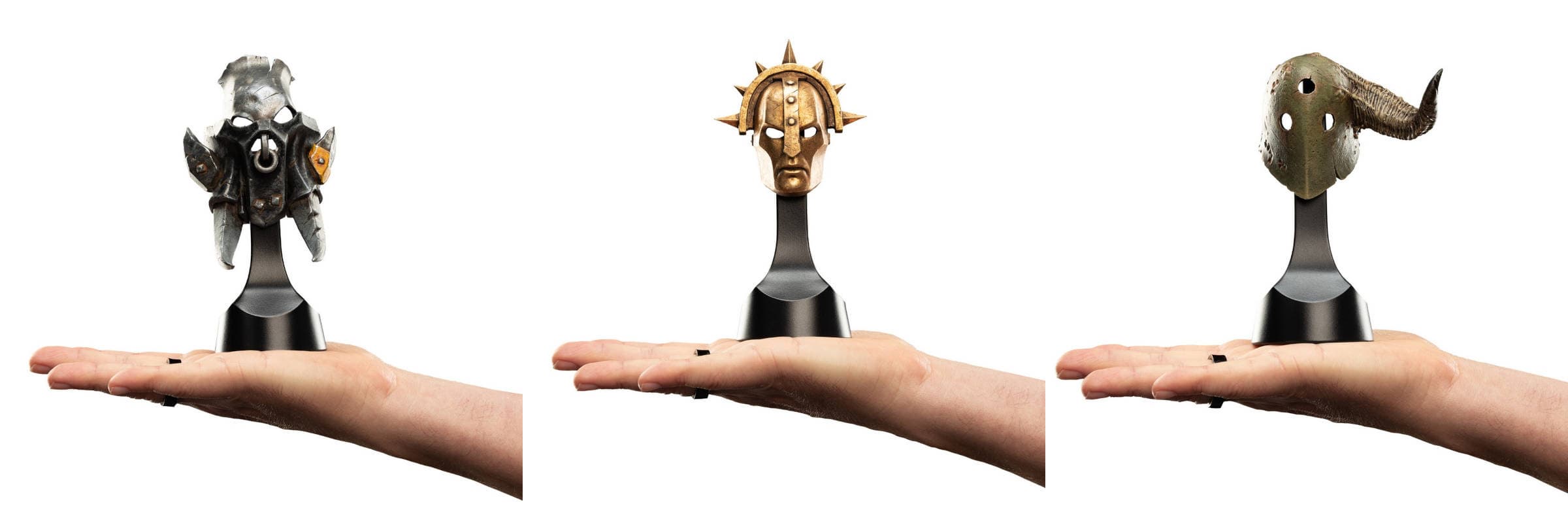 Компания Weta Workshop решила порадовать фанатов вселенной Warhammer Age of Sigmar. Она сообщила, что открылся предзаказ на реплики шлемов орруковского Ардбоя (Orruk Ardboy), Либератора из армии Грозорождённых Вечных (Stormcast Eternal Liberator) и гнилого Блайткинга (Putrid Blightking).
