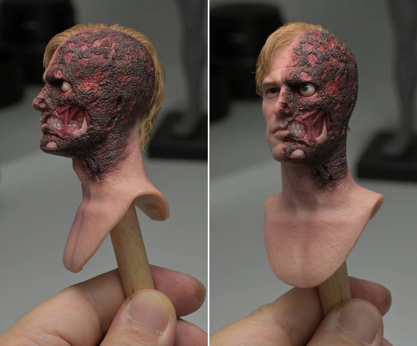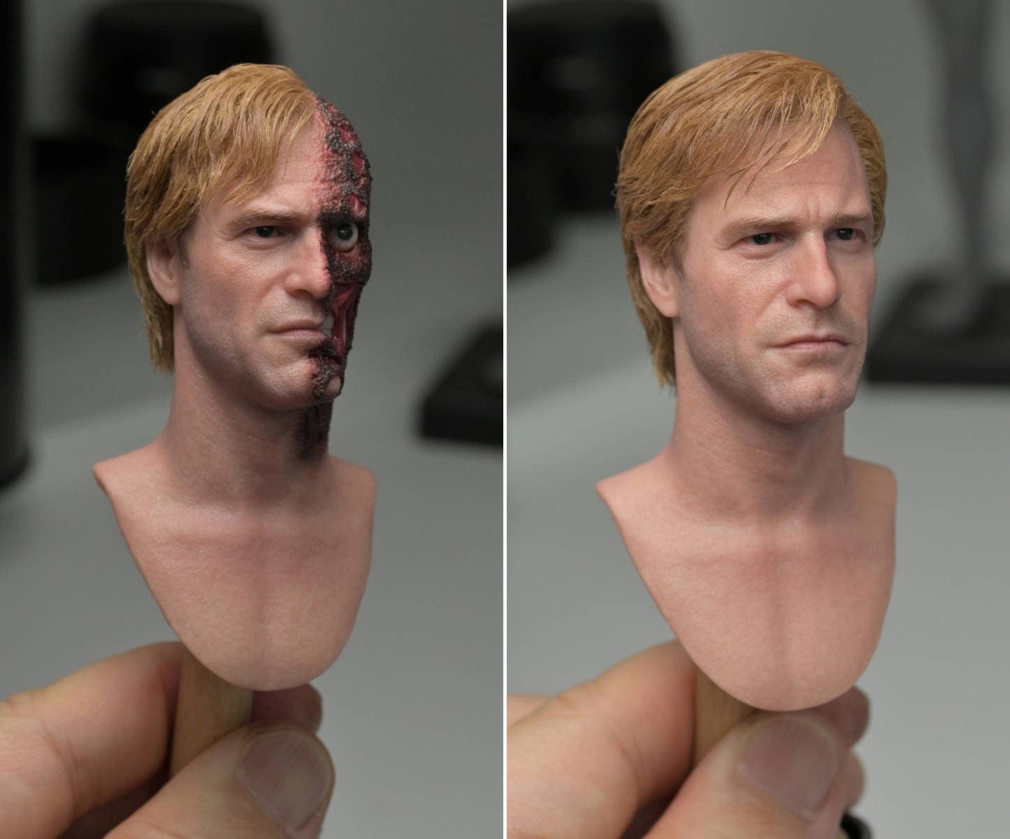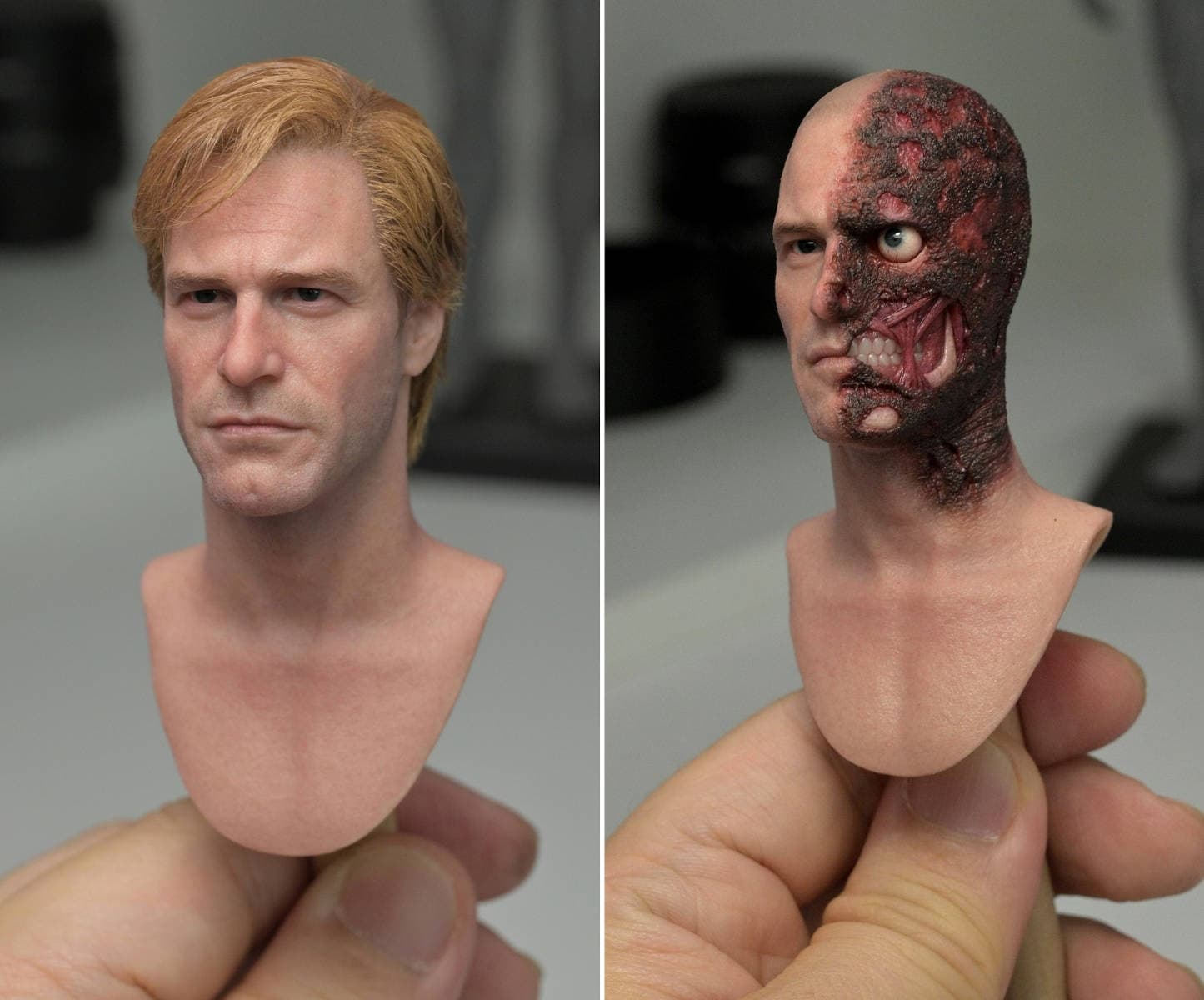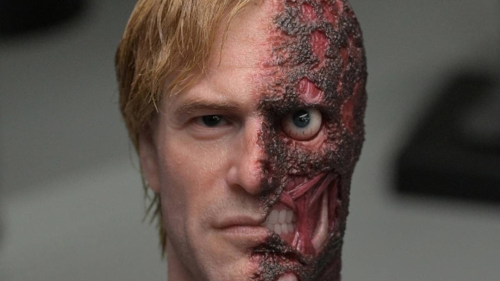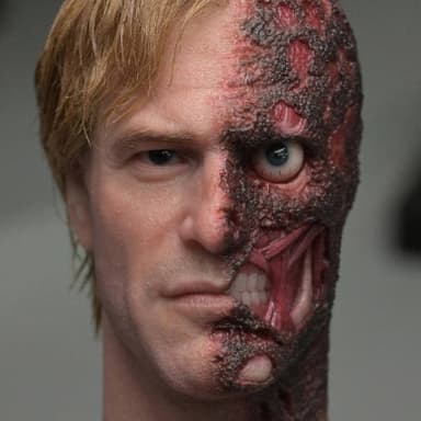 Люди узнали, что они собираются выпустить новую фигурку Харви Дента, также известного как «Белый рыцарь Готэма». Пока команда показала только голову, которая обзаведется вставными волосами, силиконовой кожей, внешностью актера Аарона Эдварда Экхарта и, скорее всего, подвижными глазами.