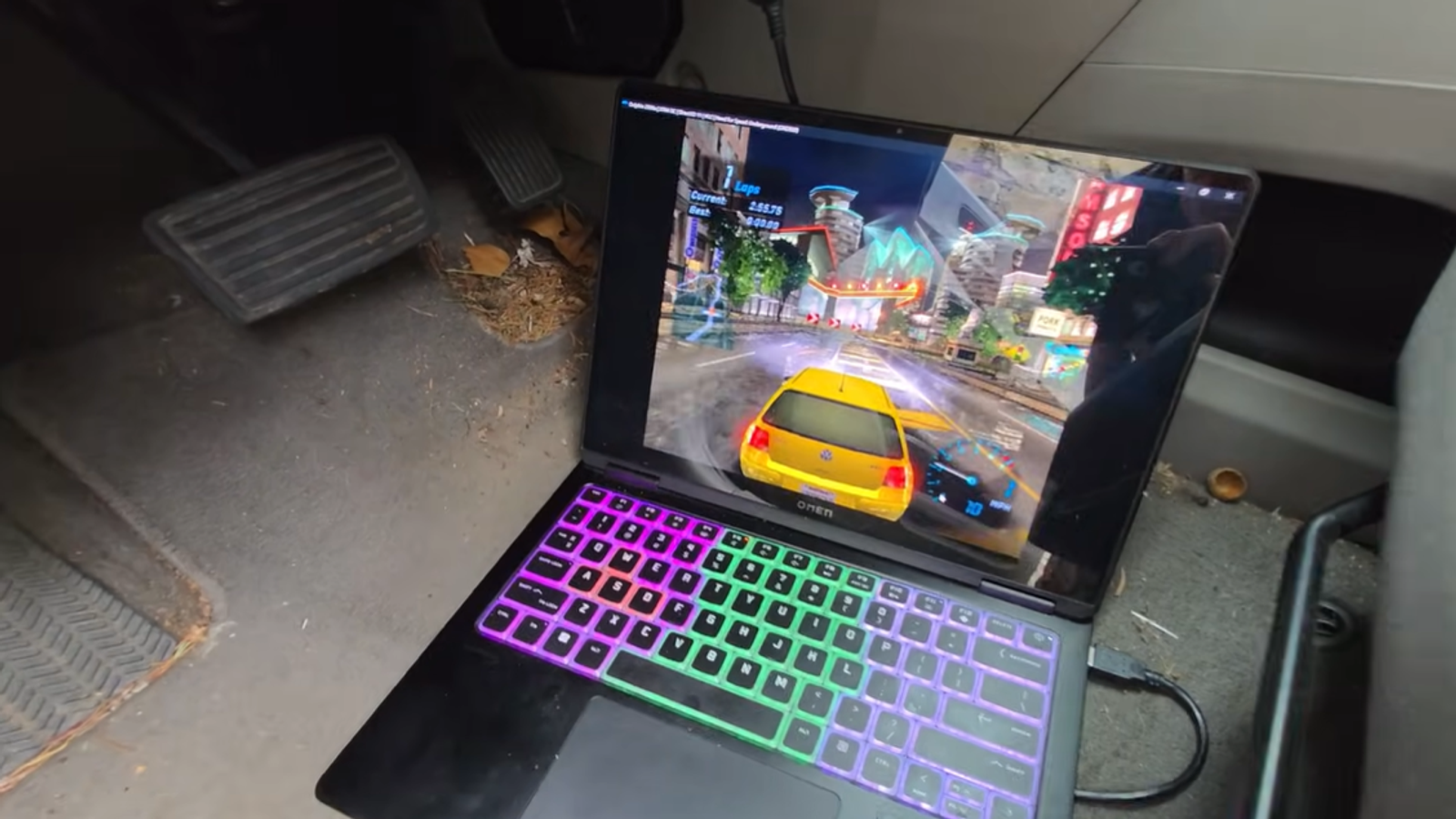 Автор YouTube-канала mryeester предложил геймерам вспомнить про франшизу Need for Speed. Он решил сыграть в гонки, используя в качестве инструмента управления ен просто руль, а целый автомобиль.
