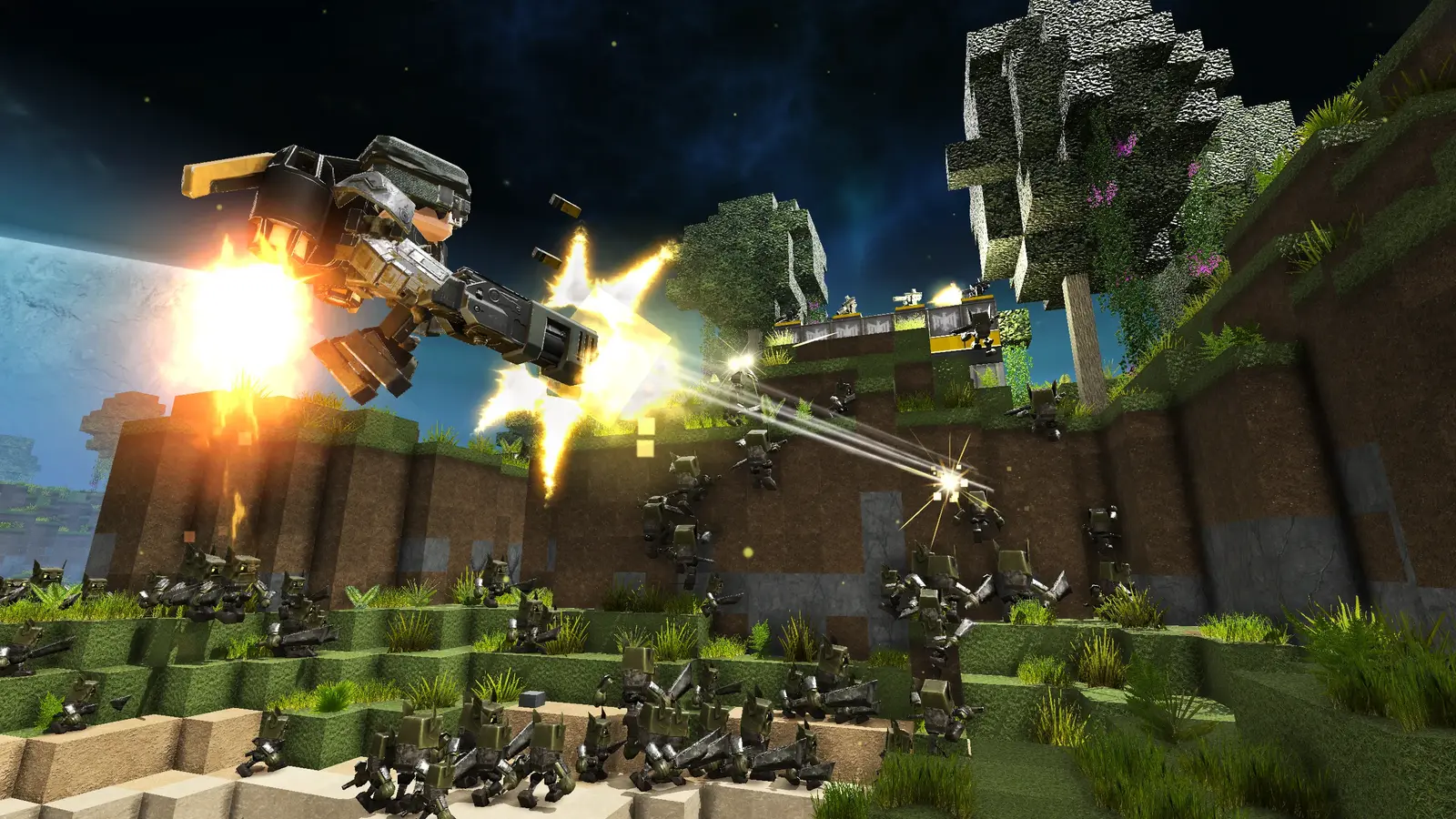 Block Fortress 2 включает несколько режимов: сюжетные миссии, выживание, песочницу, а также редактор уровней с возможностью делиться своими картами. События разворачиваются на десяти планетах с уникальными условиями — от лавовых рек до кислотных дождей.